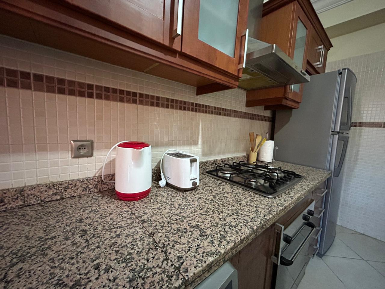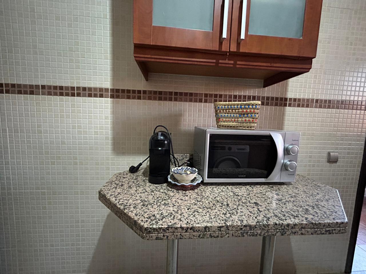 Cuisine entièrement équipée avec réfrigérateur, four, micro-ondes, machine à café, grille-pain et lave-linge tout le nécessaire pour un séjour agréable.