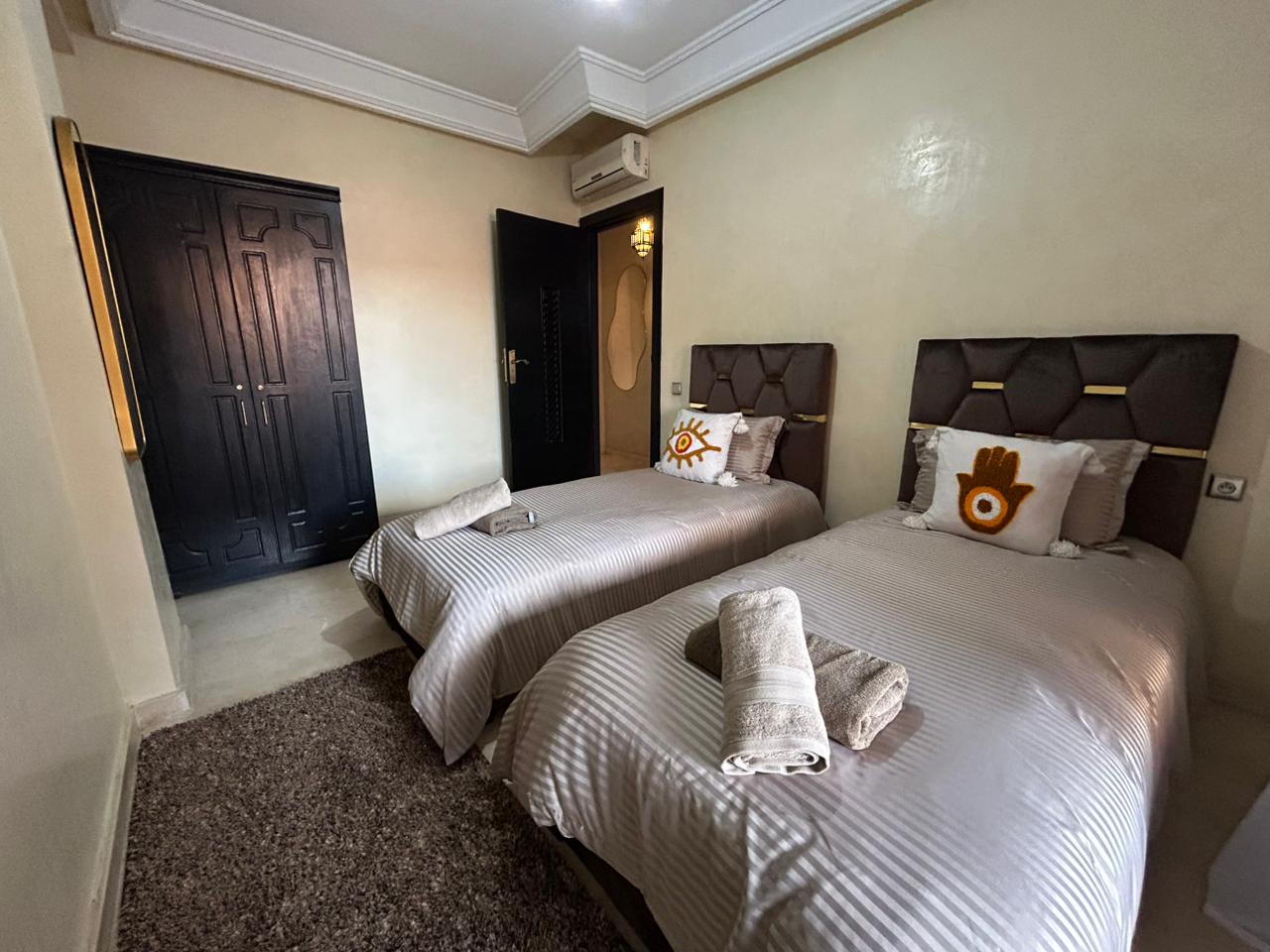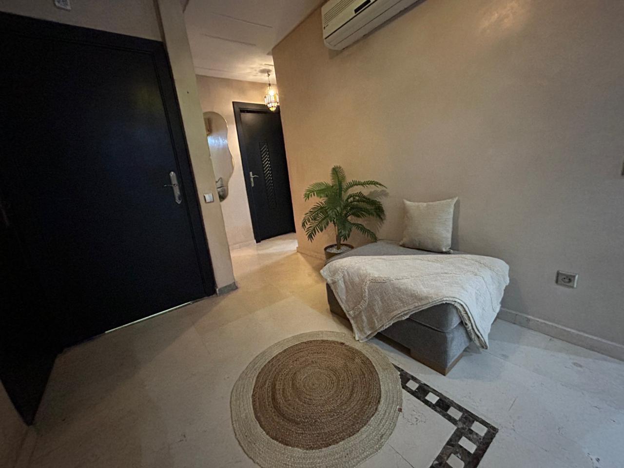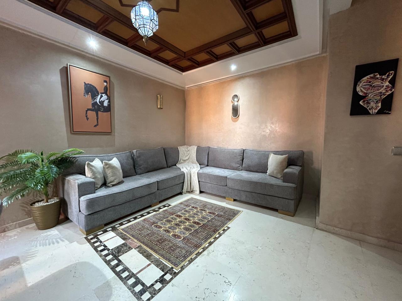 Salon moderne de style marocain, équipé d’une Smart TV (Netflix), du Wi-Fi haut débit et d’une atmosphère chaleureuse et détendue.